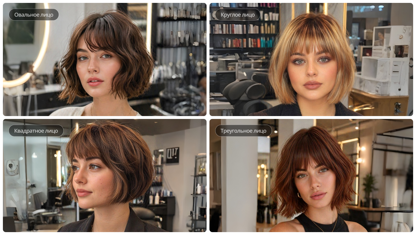 Квадратное лицо — мягкая текстура френч боба отлично смягчает угловатые черты. Рекомендую лёгкую волну на концах и косую чёлку вместо прямой.