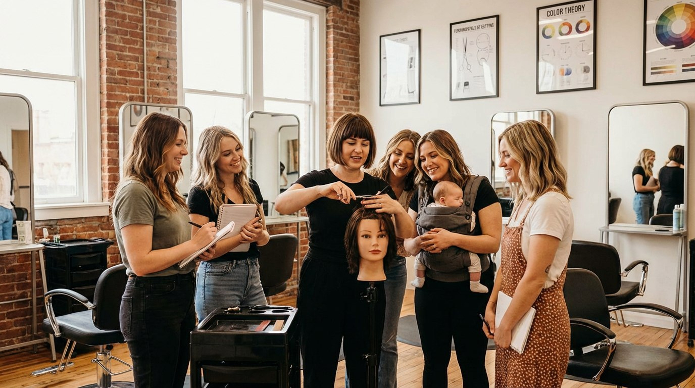 Наши успешные выпускницы говорят: «Материнство не мешало карьере — оно её создало!» Клиенты иногда доверяют мамам больше, чем молодым мастерам без жизненного опыта.