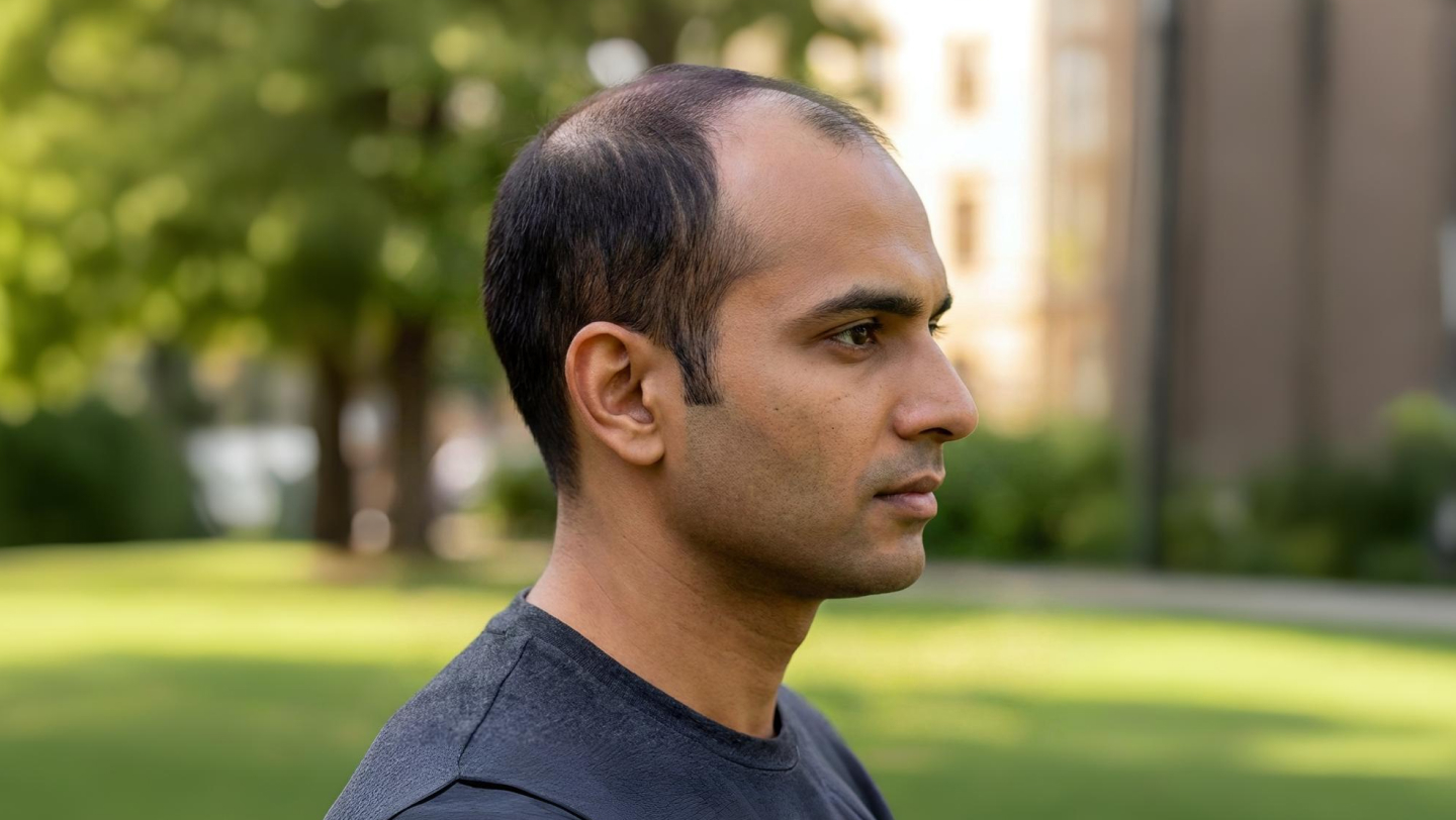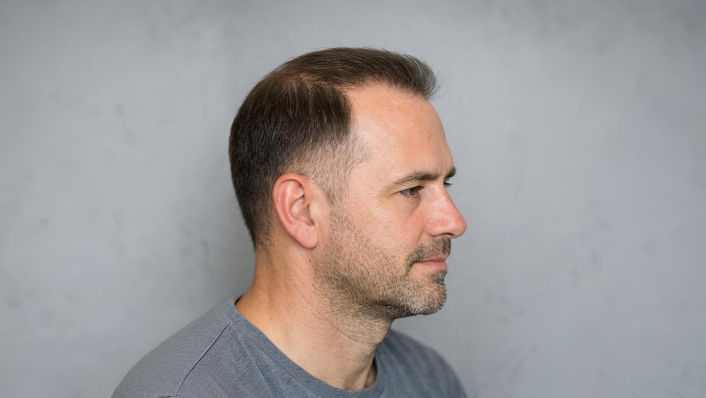 Почему это работает: Плавность перехода размывает границу между алопецией и зоной роста волос. Нет чёткой линии, за которую цепляется взгляд.